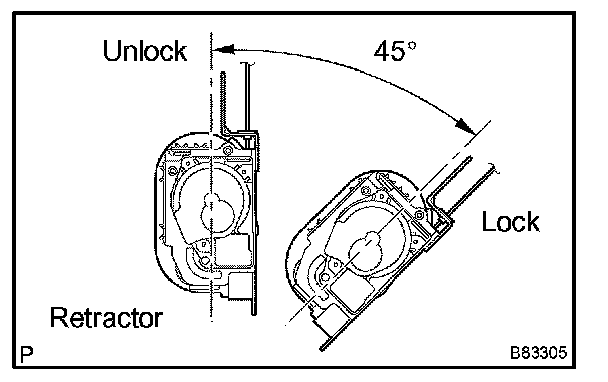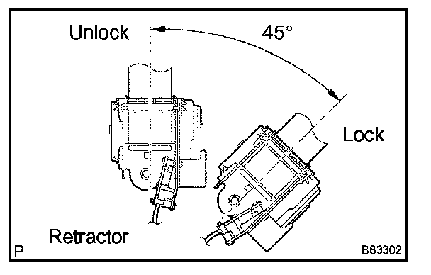 When the inclination of the retractor is over 45°, check that the belt locks.