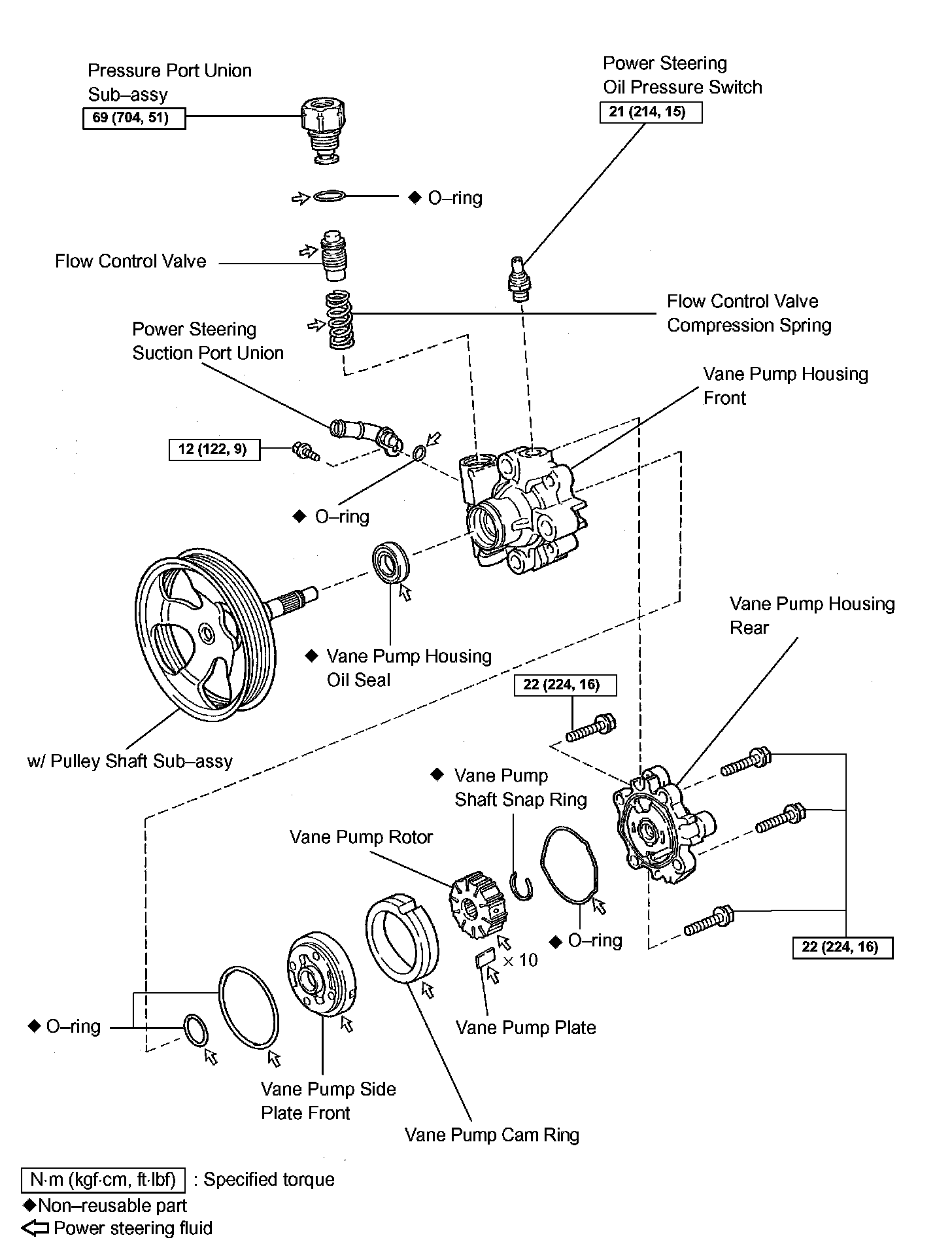If the union seat in the pressure port union is severely damaged, it may cause fluid leakage. In that case, replace the vane pump assembly.