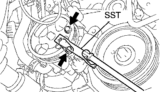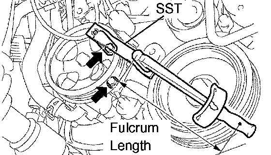 NOTICE: Use a torque wrench with a fulcrum length of 300 mm (11.81 inch). This torque value is effective when SST is parallel to the torque wrench.