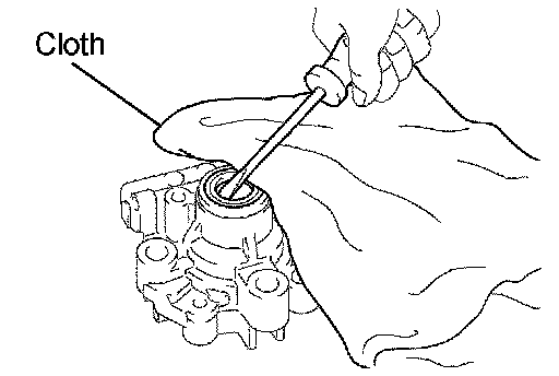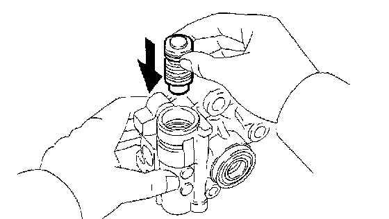 a. Coat the flow control valve with power steering fluid and check that it falls smoothly into the flow control valve hole under its own weight.