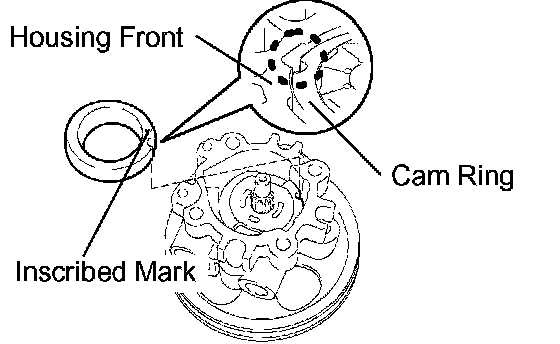 a. Align the dent of the cam ring with that of the side plate front, and install the cam ring with the inscribed mark facing upward.