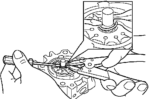 b. Using a feeler gauge, measure the clearance between a side face of the vane pump rotor groove and the vane plates.