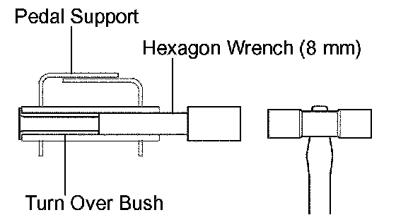 a. Using a 8 mm hexagon wrench and a hammer, remove the turn over bush.