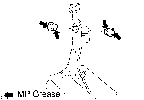 a. Apply MP grease to the inner, outer and end surfaces of 2 new bushes.
