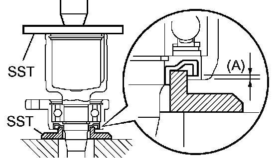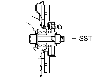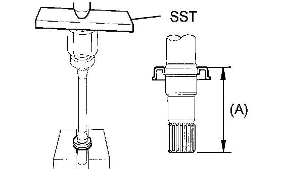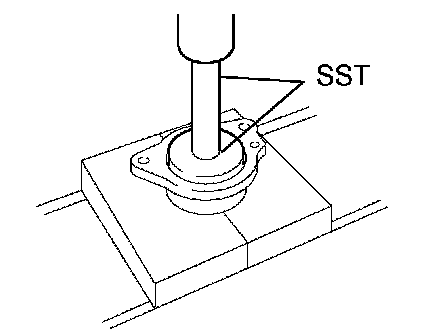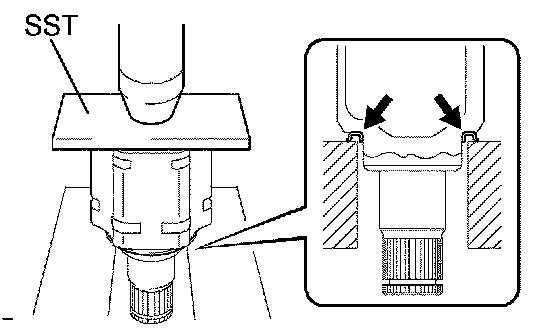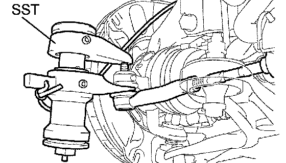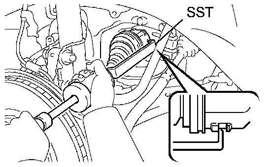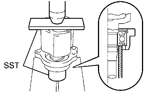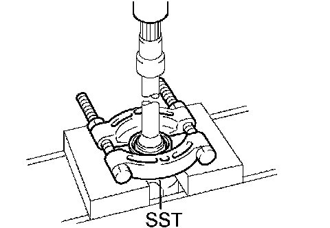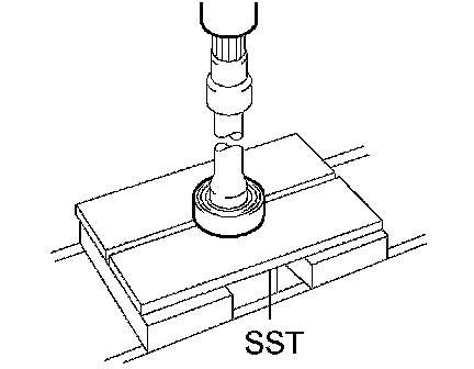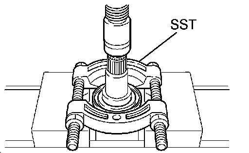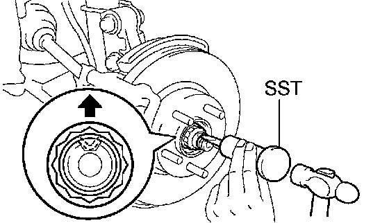 NOTICE: The hub bearing could be damaged if it is subjected to the vehicle weight, such as when moving the vehicle with the drive shaft removed. Therefore, if it is absolutely necessary to place the vehicle weight on the hub bearing, first support it with SST.