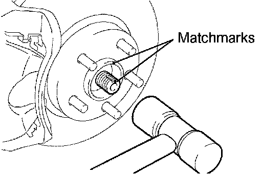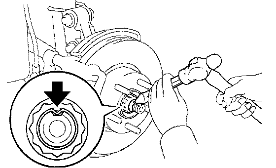 b. Using a chisel and hammer, stake the axle hub LH nut.