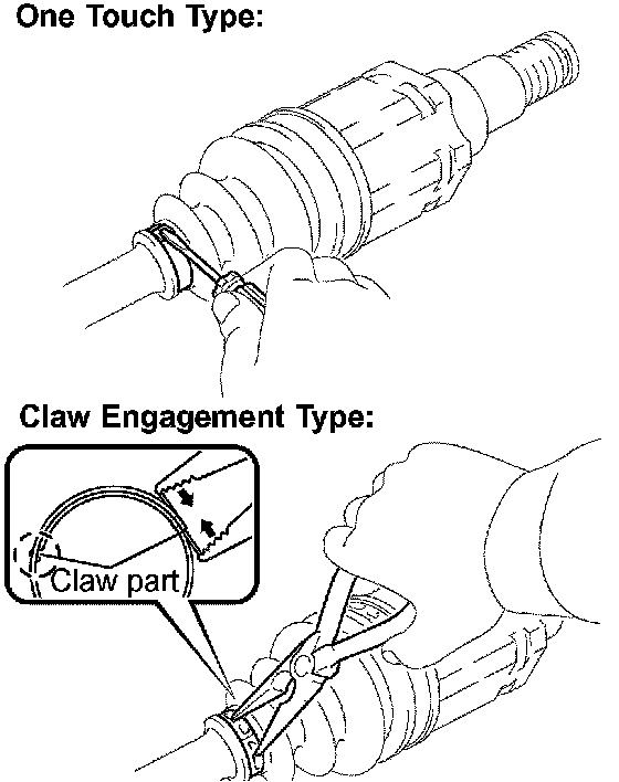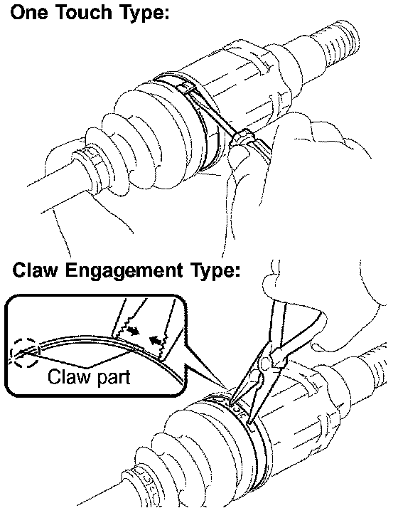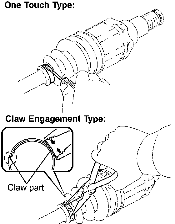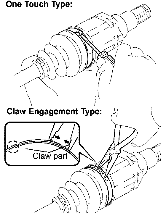b. Claw Engagement Type: Using needle nose pliers, install the inboard joint boot LH clamp, as shown in the illustration.