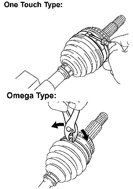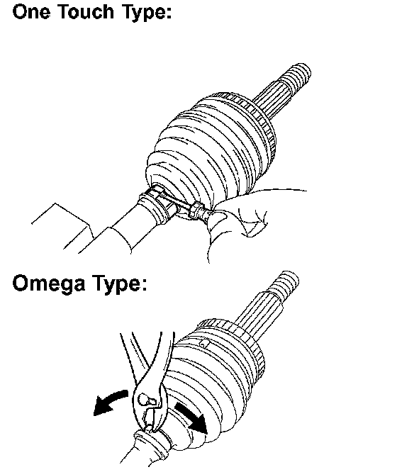 b. Claw Engagement Type: Using needle-nose pliers, separate the inboard joint boot LH clamp, as shown in the illustration.