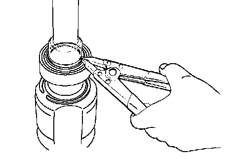 a. Using a snap ring expander, remove the drive shaft hole snap ring.