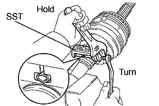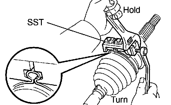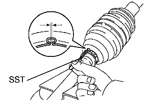 c. Tighten the SST so that the outboard joint boot LH clamp is pinched.
