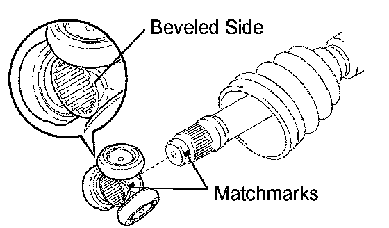 c. Place the beveled side of the tripod axial spline toward the outboard joint.