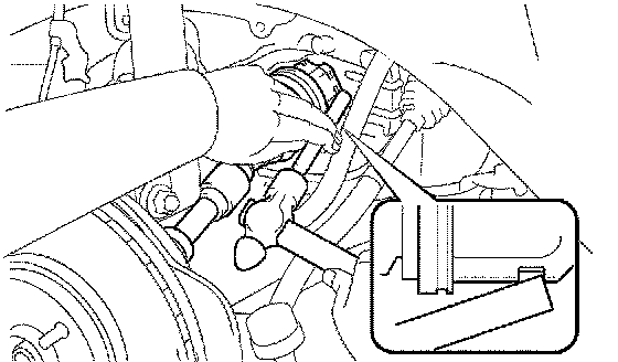 1. Using a screwdriver, remove the drive shaft damper clamp, as shown in the illustration.