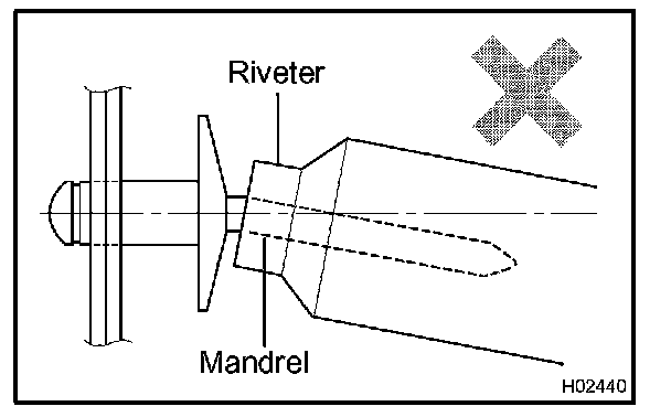 - Do not prize with the riveter as it could be damaged, the rivet loosened on the mandrel could be bent.
