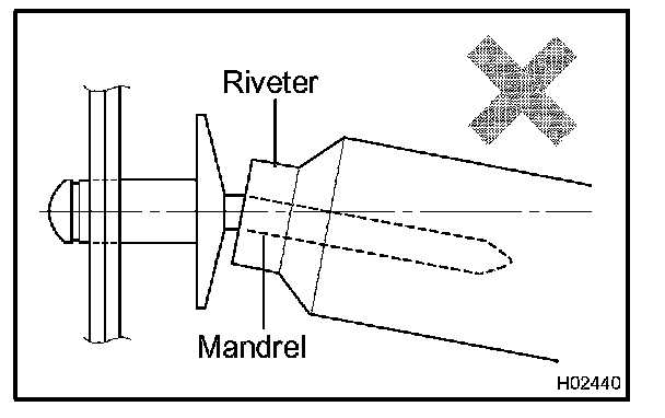- Do not prize with the riveter as it could be damaged, the rivet loosened on the mandrel could be bent.