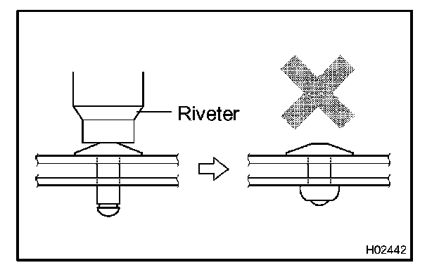 - Do not tilt the riveter or disconnect the rivet from the materials because until the materials are securely tightened, misalignment may occur.