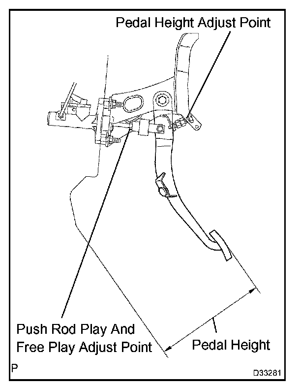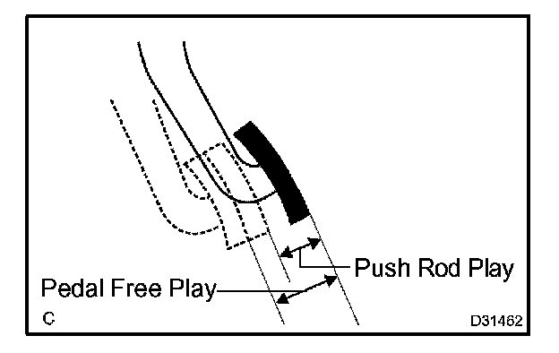 Push rod play at pedal top: 1.0 to 5.0 mm (0.039 to 0.197 in.)