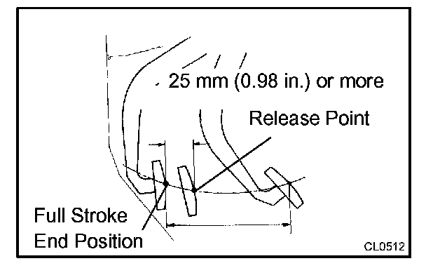 (4) Gradually depress the clutch pedal and measure the stroke distance from the point that the gear noise stops (release point) up to the full stroke end position.