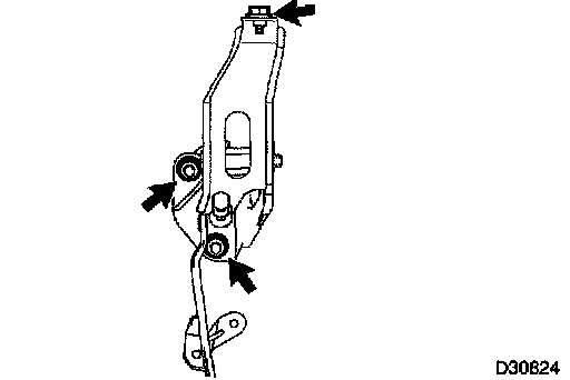 a. Remove the 2 nuts, the bolt and the clutch pedal support assembly.