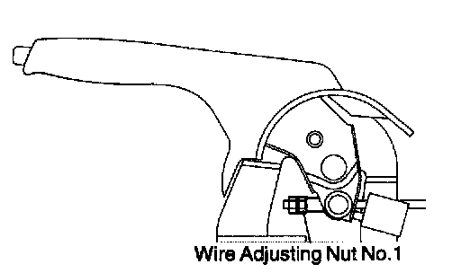 d. Turn the wire adjusting nut No.1 until the lever travel becomes correct.