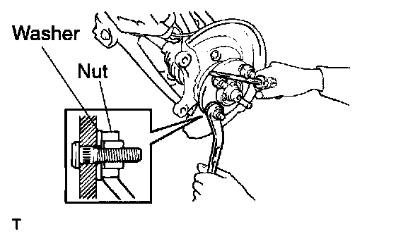 a. Install the washer and the nut to a new LH hub bolt as shown in the illustration.