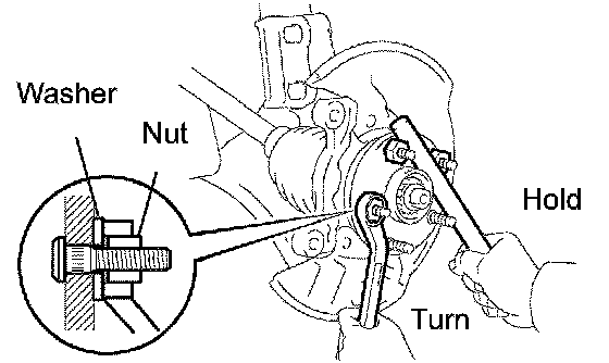 a. Install a washer and nut to a new LH hub bolt as shown in the illustration.