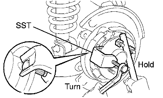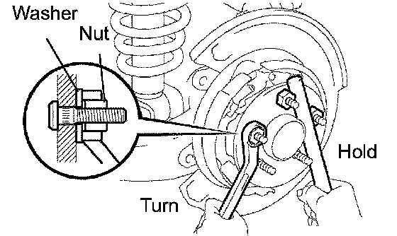a. Temporarily install the 2 nuts to the hub bolts as shown in the illustration.