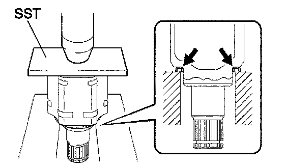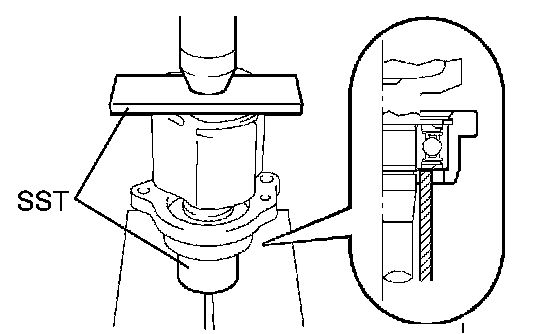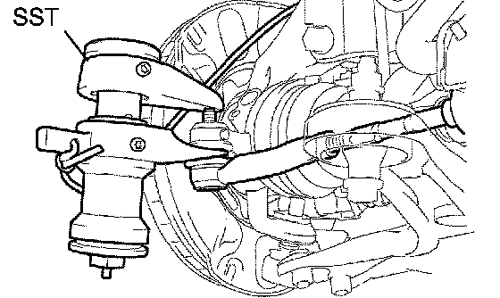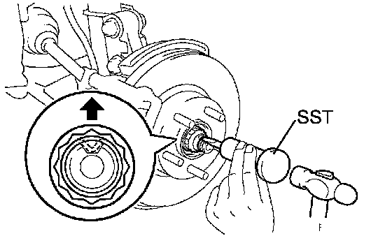 Therefore, if it is absolutely necessary to place the vehicle weight on the hub bearing, first support it with SST.