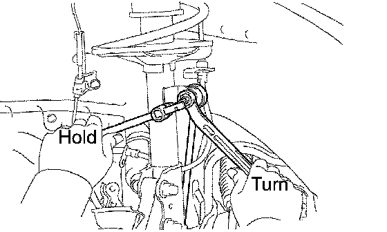 HINT: If the ball joint turns together with the nut, use a 6 mm hexagon wrench to hold the stud in place.