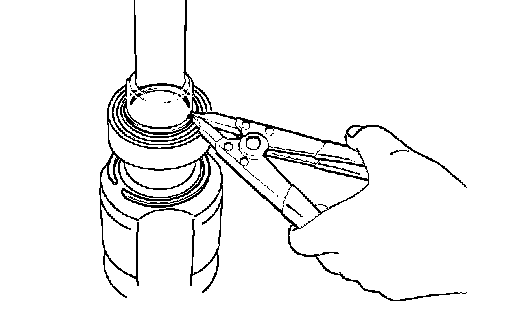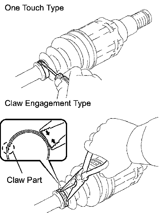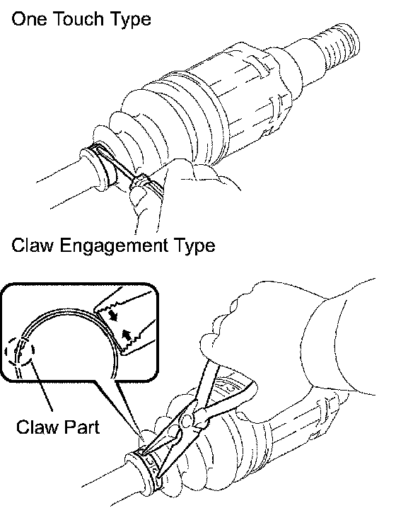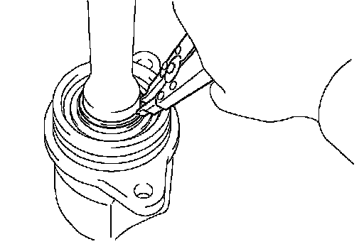 Using needle-nose pliers, remove the inboard joint boot clamp, as shown in the illustration.