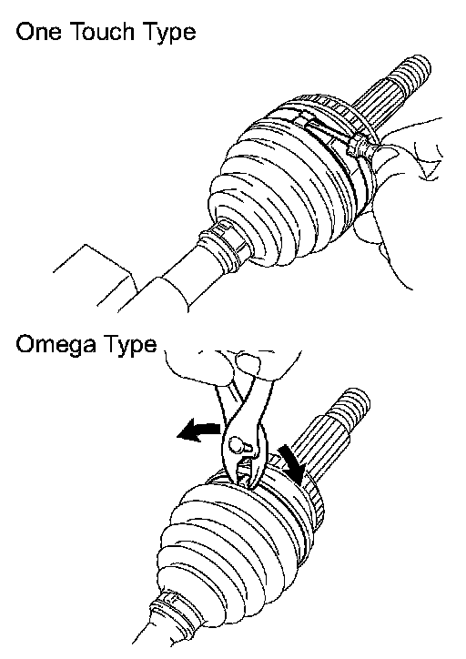 Using pliers, remove the outboard joint boot clamp, as shown in the illustration.