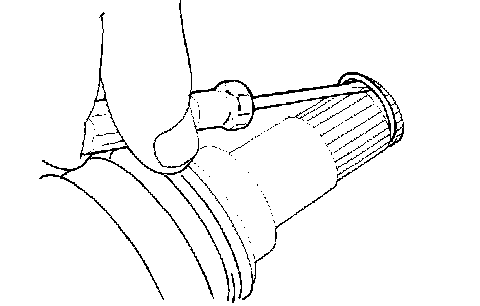 Using a screwdriver, remove the inboard joint boot clamp, as shown in the illustration.