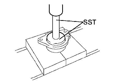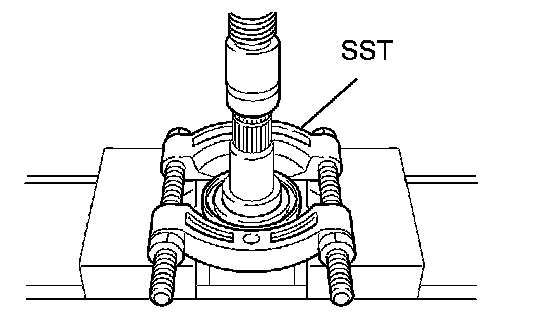 a. Using SST and a press, press out the front drive shaft dust cover.