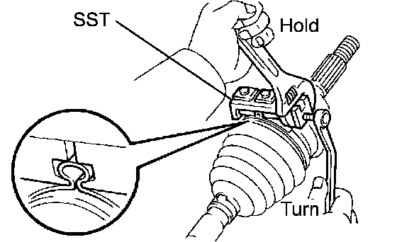 c. Tighten SST so that the outboard joint boot clamp is pinched.