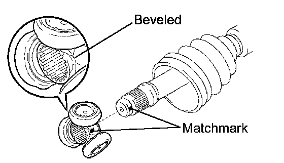 c. Place the beveled side of the tripod axial spline toward the outboard joint.