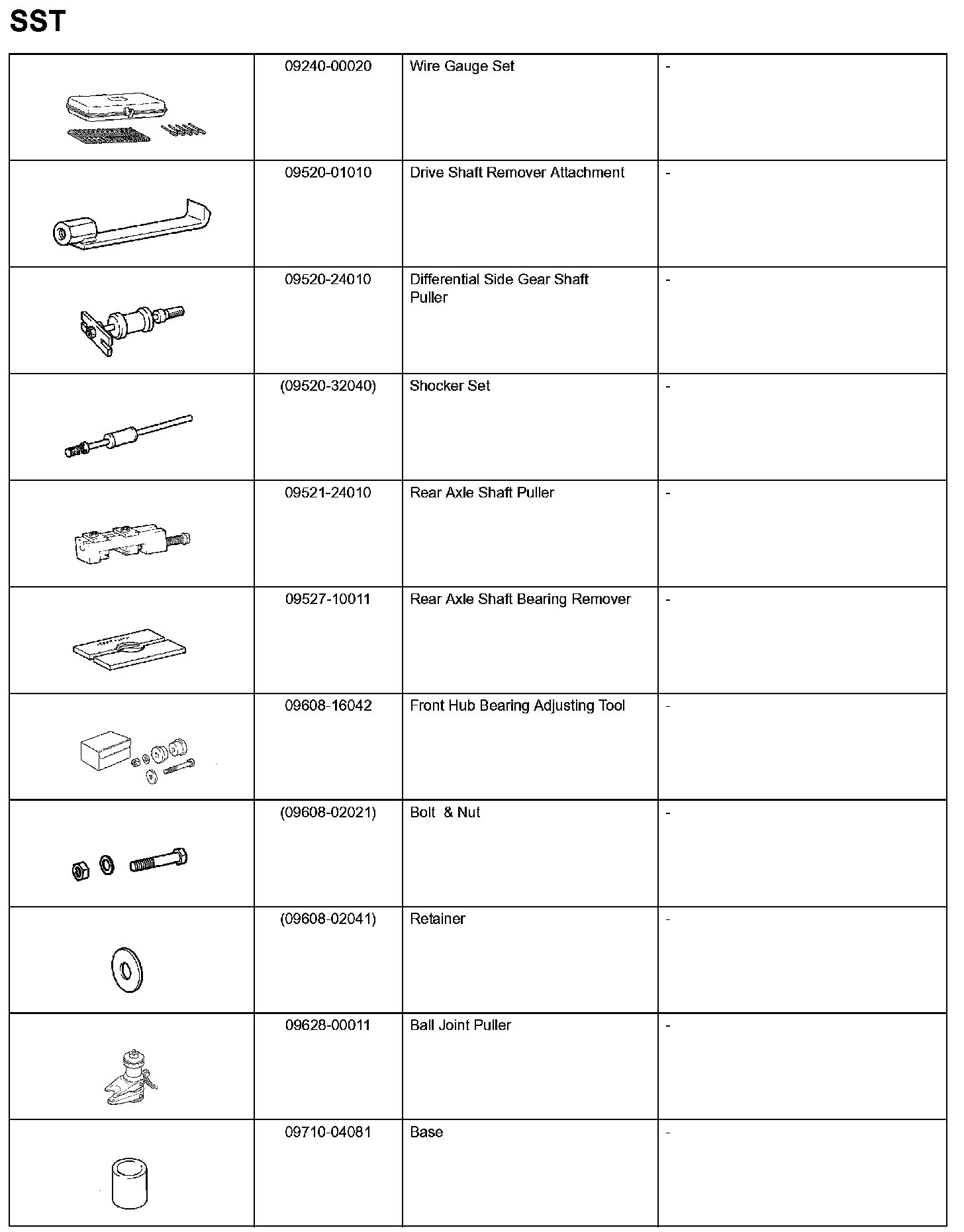 Drive Axles, Bearings and Joints: Tools and Equipment