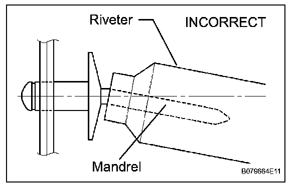 - Do not pry the rivet with the riveter, as this will cause damage to the riveter and mandrel.