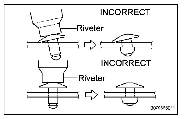 - Do not leave any space between the speaker and door panel. Firmly hold together the 2 items while installing the rivet.