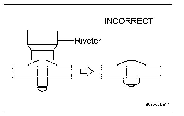 - Confirm that the rivets are seated properly against the speaker. Do not tilt the riveter when installing the rivet to the speaker. Do not leave any space between the rivet head and the speaker.