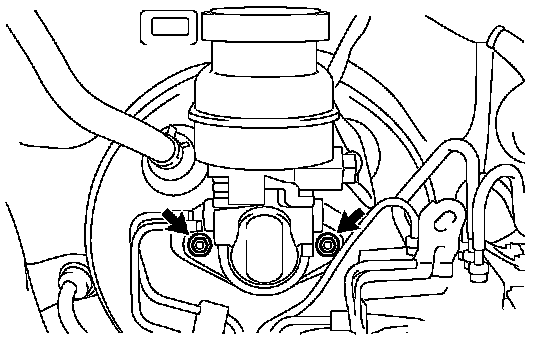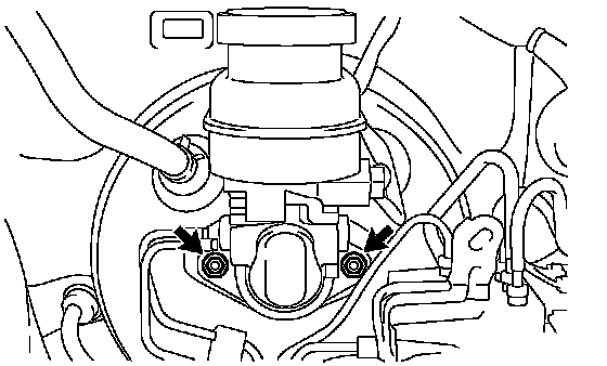 a) Install the brake master cylinder to the booster with the 2 nuts.