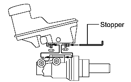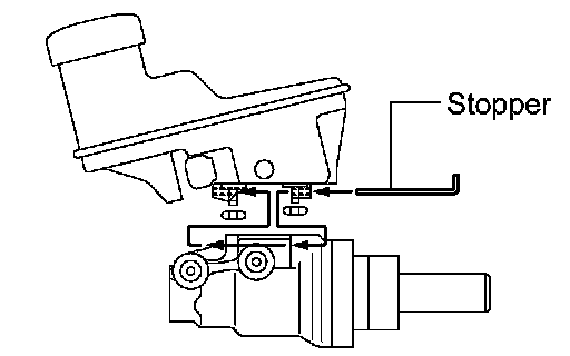NOTICE: Install the stopper securely to the groove of the reservoir and master cylinder.
