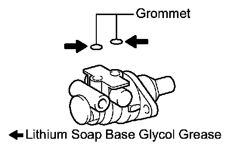 a) Apply lithium soap base glycol grease to 2 new grommets and install them to the brake master cylinder.