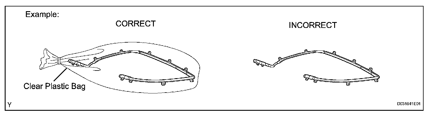 1. Always place a removed or new curtain shield airbag assembly in a clear plastic bag, and keep it in a safe place.