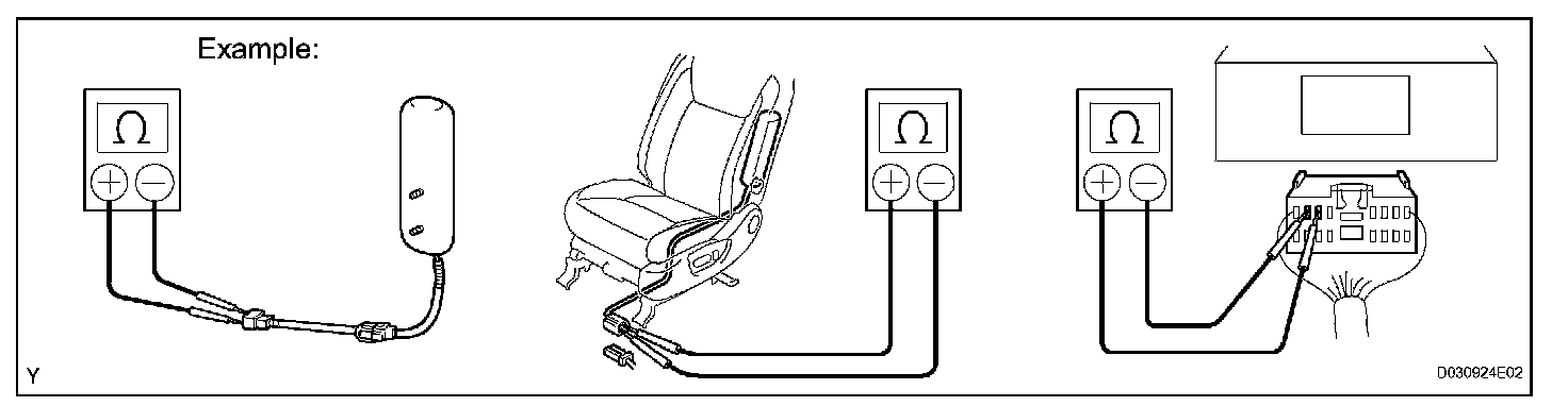 1. Never measure the resistance of the seat outer belt. This may cause the pretensioner of the seat belt to activate, which could cause serious injury.