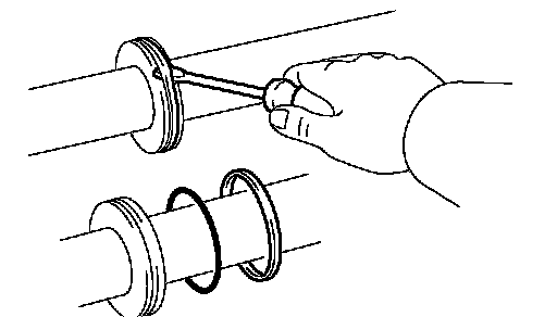 c. Using a screwdriver, remove the O-ring from the rack bush.