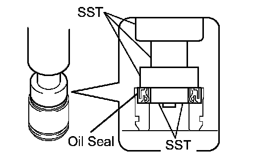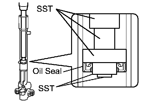 a. Using SST and a press, press in the rack bush oil seal to the rack bush.