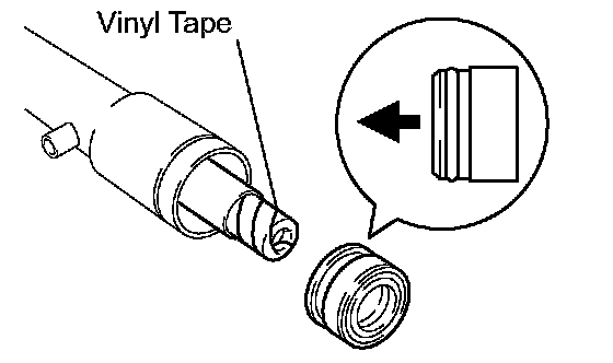 c. Wrap vinyl tape around the steering rack end to prevent damaging the rack bush oil seal lip, and apply power steering fluid to the rack bush oil seal.