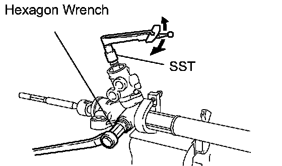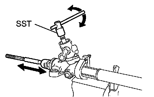 e. Using a 19 mm hexagon wrench, loosen the rack guide spring cap until the rack guide spring stops functioning.