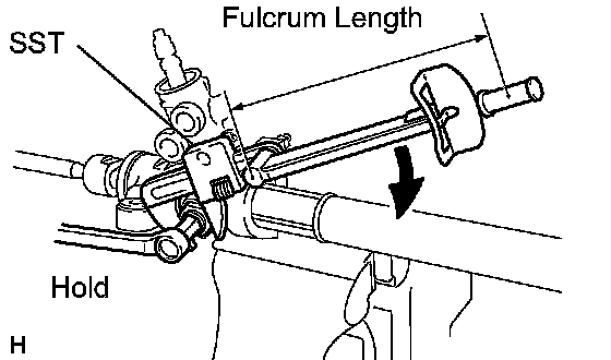 i. Hold the rack guide spring cap by using a 19 mm hexagon wrench, and using SST, torque the spring cap lock nut.