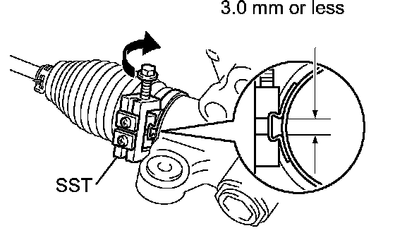 a. Using SST, tighten the No. 2 rack boot clamp, as shown in the illustration.