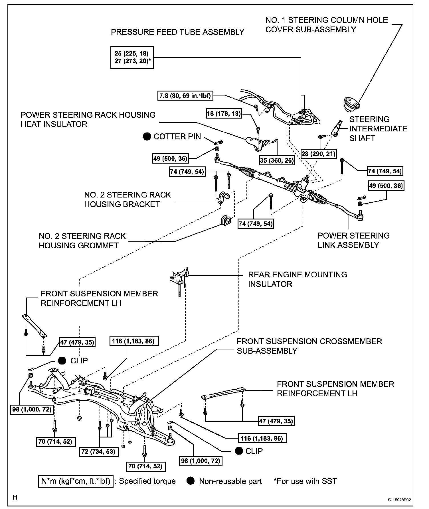 28. REMOVE STEERING TURN PRESSURE TUBE RH